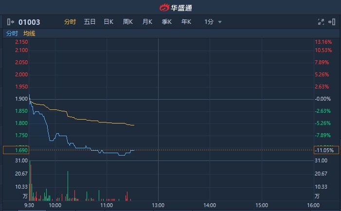 智通财经APP获悉,欢喜传媒(01003)早盘跳水走低,截至11时27分,跌11.05%,报1.69港元,成交额达477.8万港元。