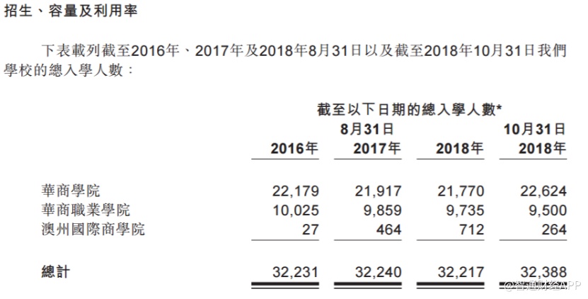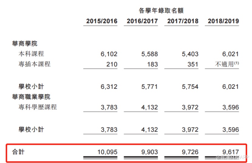 作为开设本科及专科课程的民办高等院校,华商学院每学年招收的新生人数受当地教育部门规定的录取名额限制。从招股书披露的数据显示,从2015/2016学年开始,公司两所中国运营学校录取名额一直在下滑,从10095名持续降至2017/2018学年的9726名,并且在2018/19学年降至9617名。