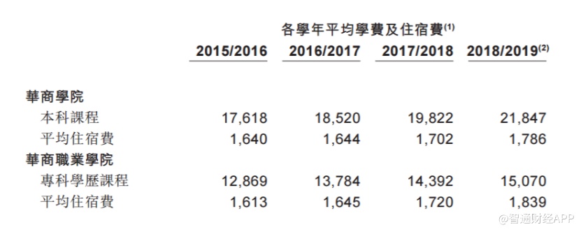 招股书显示,公司当前90%以上的收入来源于学费,而其中超过97%来源于华商学院和华商职业学院。其中华商学院为公司主要的收入来源,2017/2018学年,华商学院实现收入4.7亿元(人民币,单位下同),占公司当期营业总收入的73.6%。