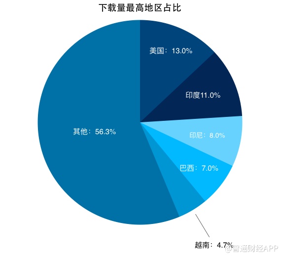 智通财经APP获悉,据Sensor Tower数据,东南亚已成了2018年出海手游下载量最高的地区。其中,印度占比11%,印尼占8%,越南则为4.7%,三者合同占比23.7%。从单个出海国家来看,美国仍是出海手游下载量最高的地区,占比13%。