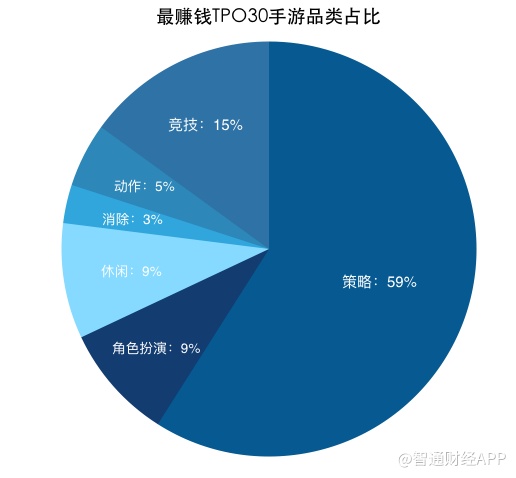 与地区榜单相同的是,下载量高的手游并不意味着吸金能力也同样强。尽管以《PUBG Mobile》、《王者荣耀》为代表的竞技类游戏在海外攻城略地,但策略类游戏始终是在出海收入最可观的一类游戏,而下载量最高的休闲游戏占比却大幅缩水。