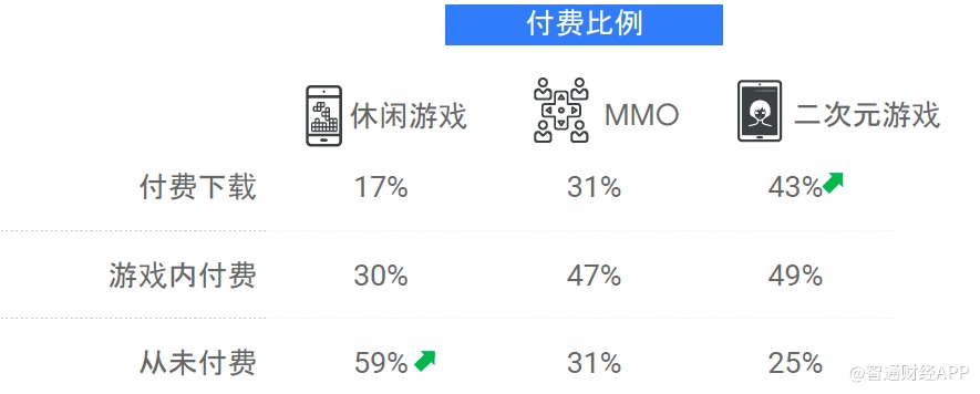 有意思的是,付费比例更高的二次元玩家,群体规模却远低于休闲游戏及MMO玩家规模,这也意味着二次元市场仍充满巨大的开发潜力。