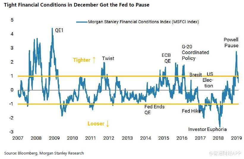 为了解释阴晴不定的资产价格,许多投资者都会将原因归咎于美联储的政策,年终流动性不佳和资产管理公司的业绩压力都加剧了这一现象。因此,随着金融状况指数飙升至足以让美联储扭转其政策路线的程度,这也在暗示着投资者可以去承担更多的风险。