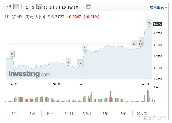 智通财经APP获悉,在岸人民币兑美元跌破6.78关口。
