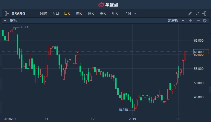 智通财经APP获悉,美团(03690)延续强势,截至11时17分,涨6.48%,报61.65港元,成交额达3.406亿港元,年初至今累涨近50%。