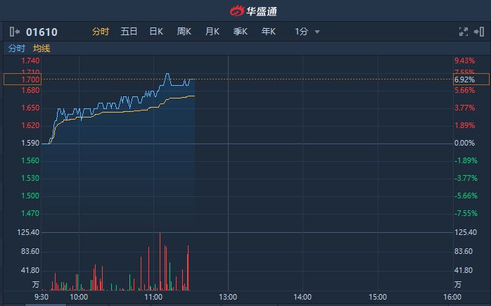 智通财经APP获悉,港股猪肉概念股中粮肉食(01610)早盘平开高走,截至11时28分,涨6.92%,报1.7港元,成交额达2700万港元。