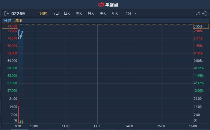 智通财经APP获悉,药明生物(02269)今日跳空高开,逆市上扬,截至9时39分,涨71.45港元,成交额达3724万港元。