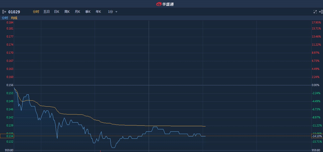 智通财经APP获悉,铁货(01029)年初至今累计涨幅达185%,今日现大幅回吐。截至13时59分,跌14.1%,报价0.134港元,成交额2139万。