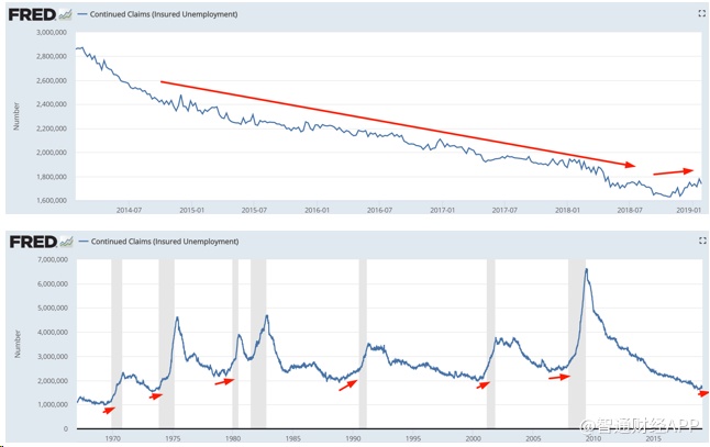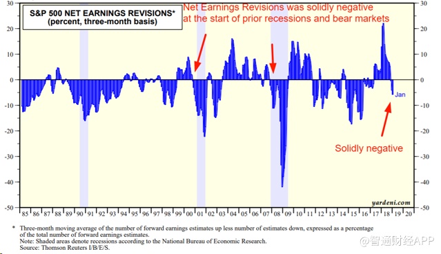 2019年1月,标普500指数的盈利修正指标已明显为负。这是一个熊市和经济衰退的“充分非必要条件”: