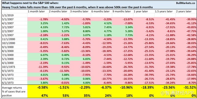 数十年前的50万辆重型卡车与今天的50万辆重型卡车意义肯定不同,因此这一信号可以作为一个长期的警告信号,而不是长期的熊市信号。但重要的不是重型卡车的具体销售量,而是其所体现的一种趋势。