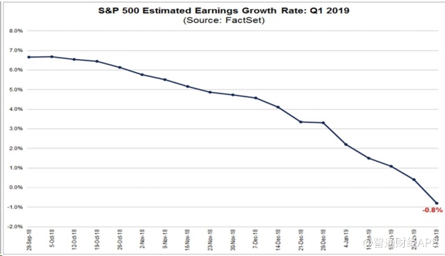 盈利增长正在下降,对2019年第一季度盈利增长的预期为负,而该指标在2018年为正20%: