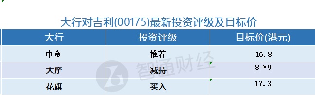 一、大行对吉利(00175)最新投资评级及目标价汇总