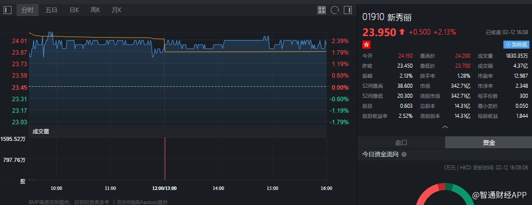 截至今日收盘,新秀丽(01910)升2.13%,报23.95港元。