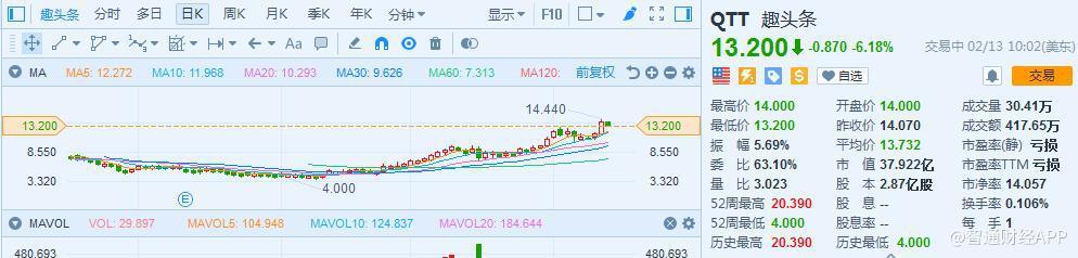 美股异动 | 趣头条(QTT.US)跌逾6%