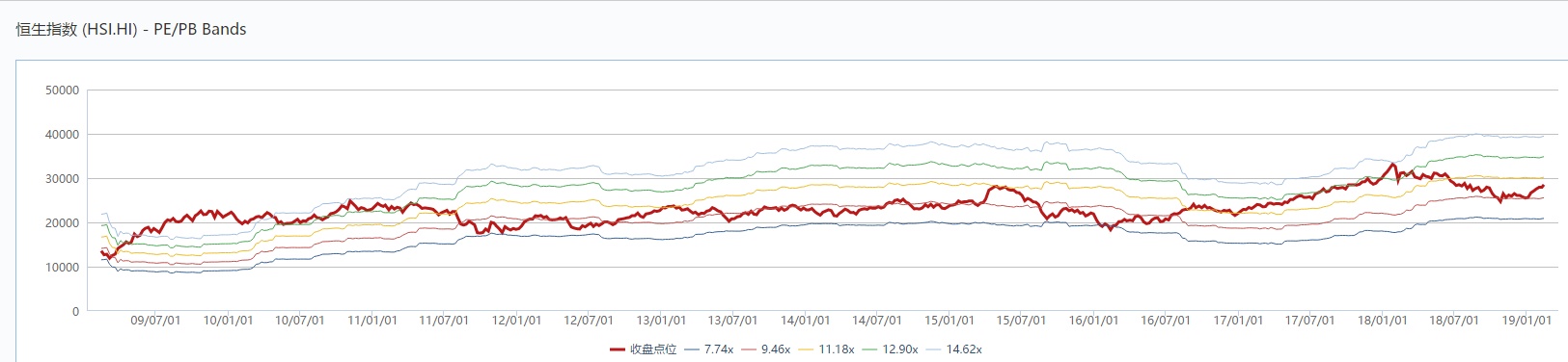 以上内容仅仅是本轮反弹的拆解,如果将视野放到年内,经过了2018年的杀估值(从14.62倍到9.4倍,35%),哪怕最悲观的情况下,估值从目前的10.55到极端低估的7.74,估值的下杀空间不过26.6%,中性情况下,考虑到企业盈利盈利的增长,恒指下行的空间在目前环境下也很难超过10%,没有重大事件的影响,恒指全年预计会在这个区间内波动,但个股会出现比较明显的分化,赚钱效应要远远强于2018年,若是恒指出现恐慌性的调整,优质个股反而是趁乱买入的好机会。