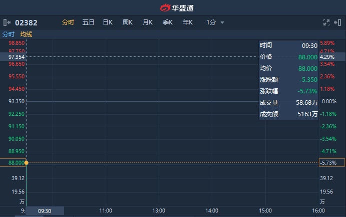 智通财经APP获悉,舜宇(02382)今日大幅低开,截至9时20分,跌5.73%,报88港元,成交额达5347万港元。