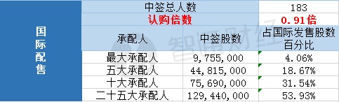 国际配售中签人数183人,认购未足额。