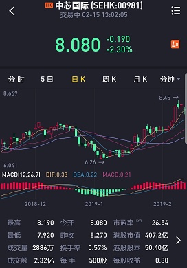 截至发稿,中芯国际(00981)跌2.30%,报8.08港元。