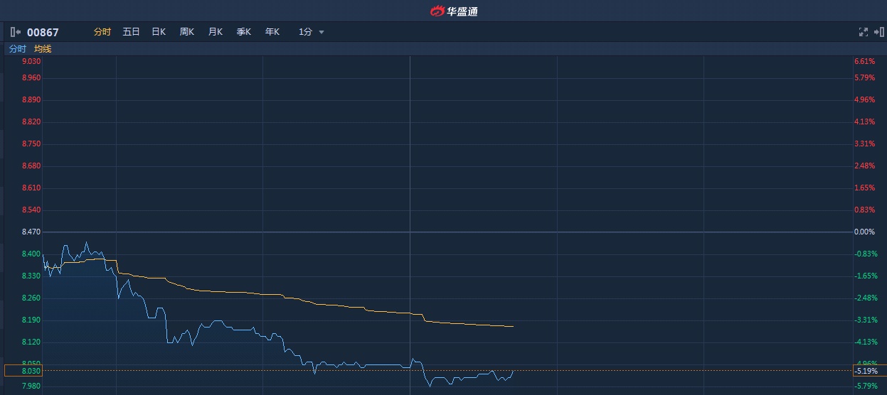 智通财经APP获悉,瑞银将康哲药业(00867)目标价由20.3元大幅下降至9.61元,股价遭重挫。截至13时41分,跌5.19%,报价8.03港元,成交额3920万。
