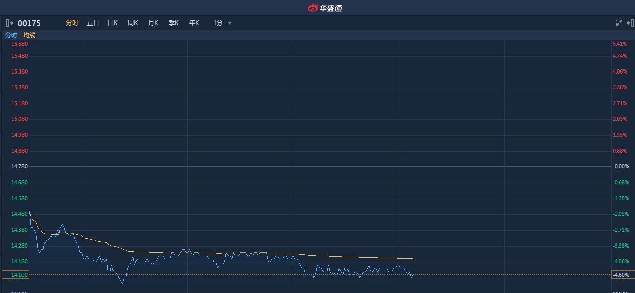 智通财经APP获悉,吉利汽车(00175)遭大摩看淡至9港元,评级“减持”。该股股价现小幅回吐,截至14时08分,跌4.6%,报价14.1港元,成交额6.278亿。