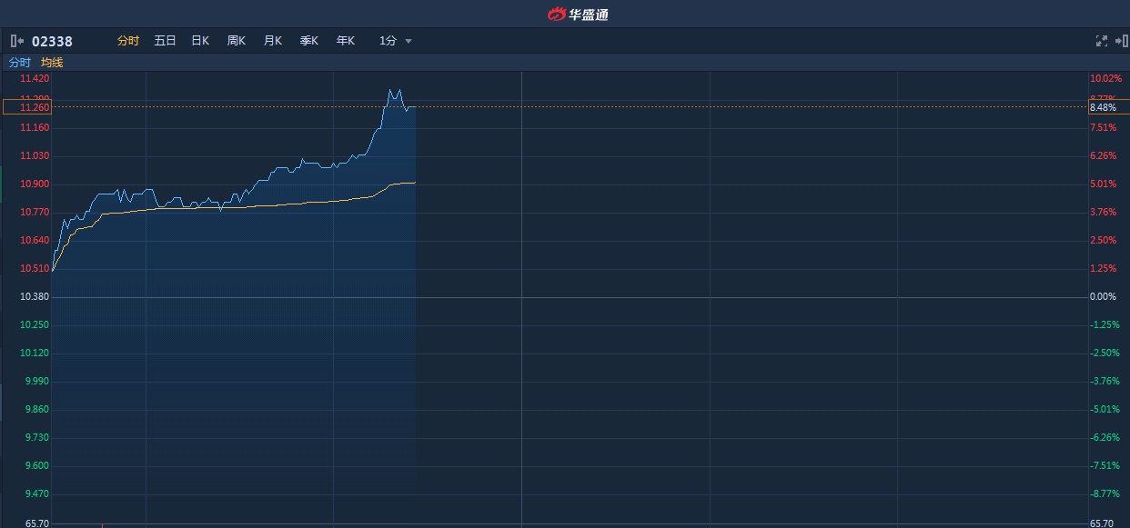 港股异动︱潍柴动力(02338)AH股同步上涨 升幅均超8%