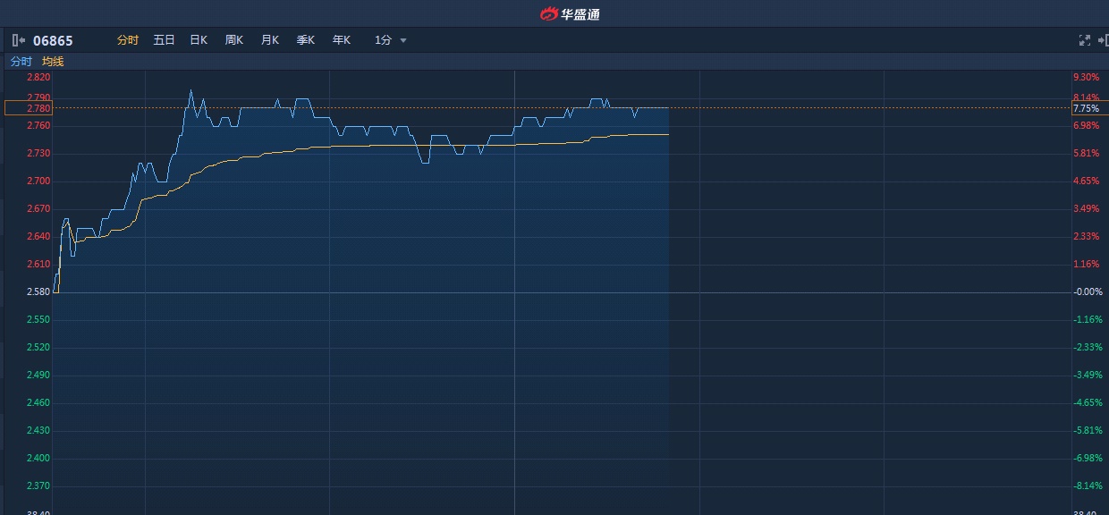 智通财经APP获悉,福莱特玻璃(06865)A股涨停,H股跟涨。截至13时48分,涨7.75%,报2.78港元,成交额1545万。