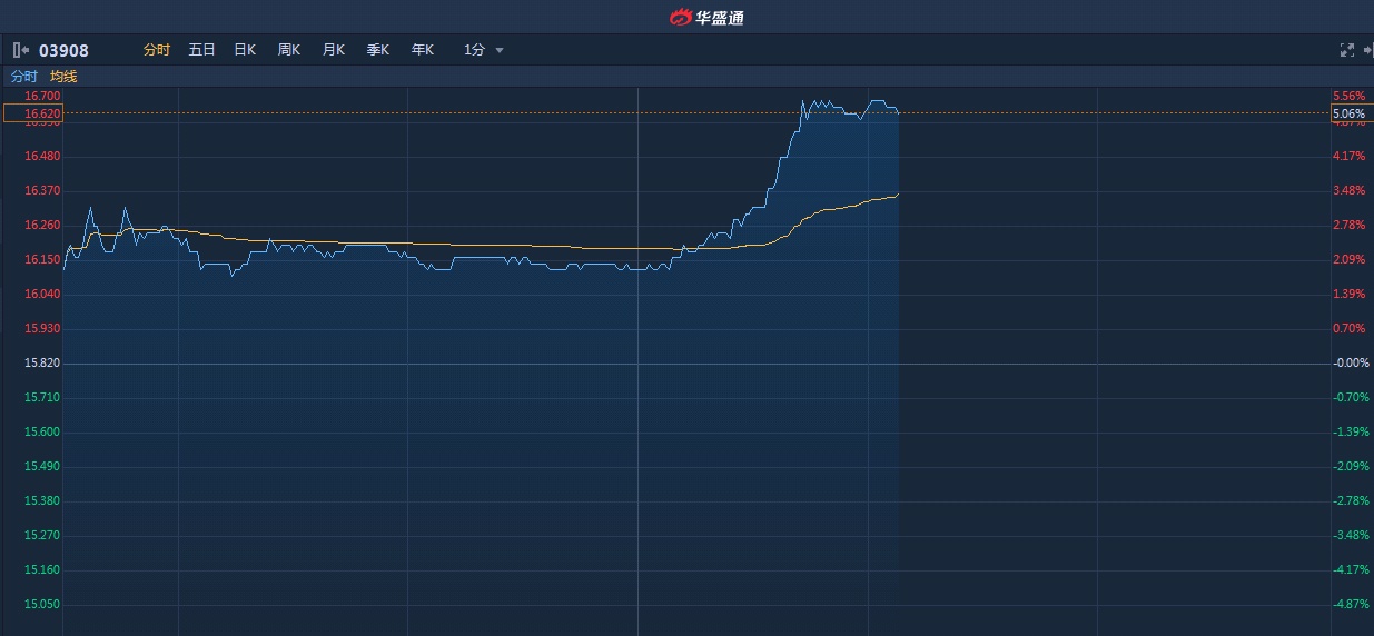 智通财经APP获悉,今日午后中资券商股随A股集体大涨。中金公司(03908)近日获高盛上调目标价至21.9港元,午后股价快速上涨。截至13时57分,涨5.06%,报16.62港元,成交额1.12亿。