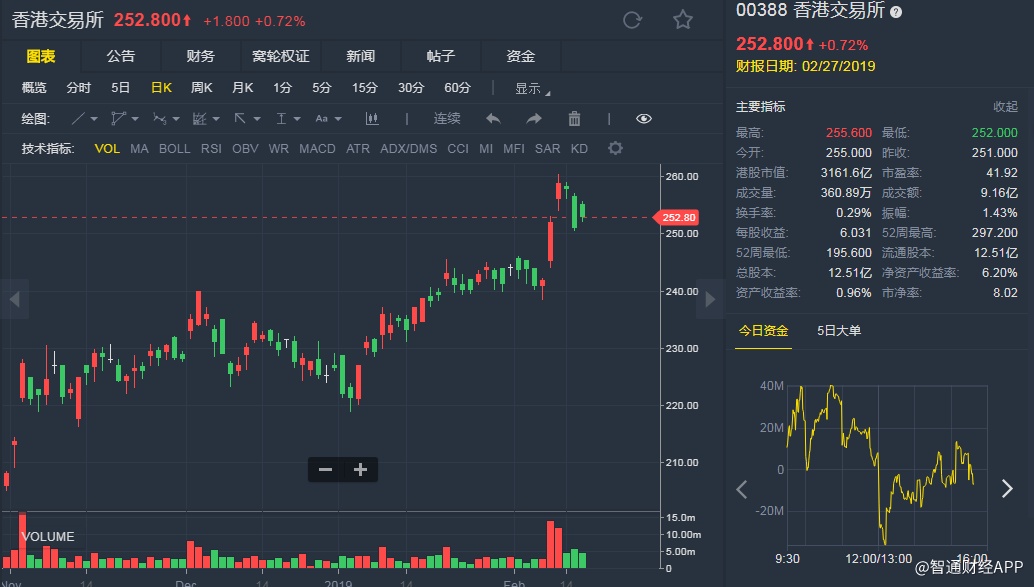 截至发稿,港交所(00388)涨0.72%,报252.80港元。