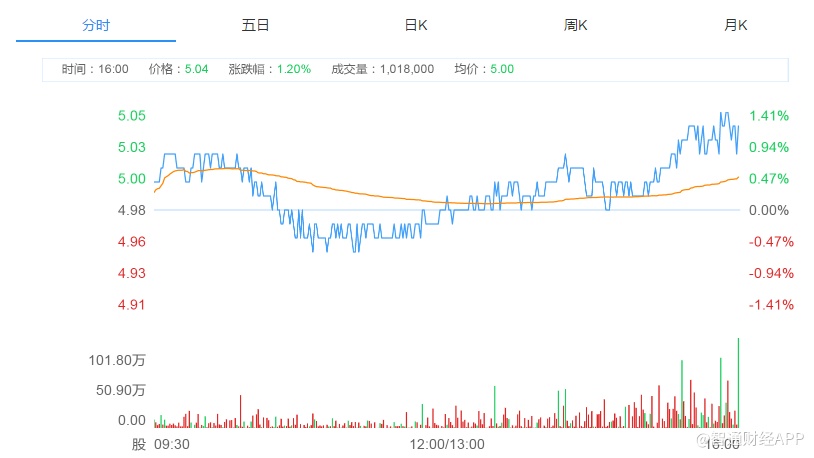 截至今日收盘华能国际电力升1.20%,报5.04港元。
