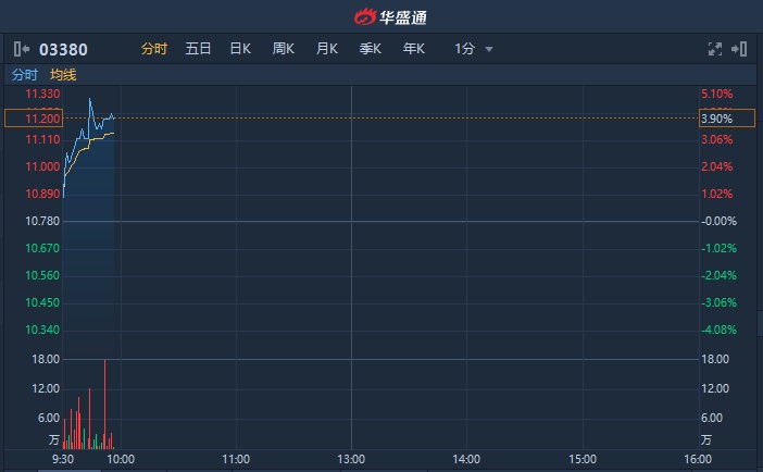 智通财经APP获悉,龙光地产(03380)早盘高开震荡向上,截至9时55分,涨3.9%,报11.2港元,成交额达1168万港元。