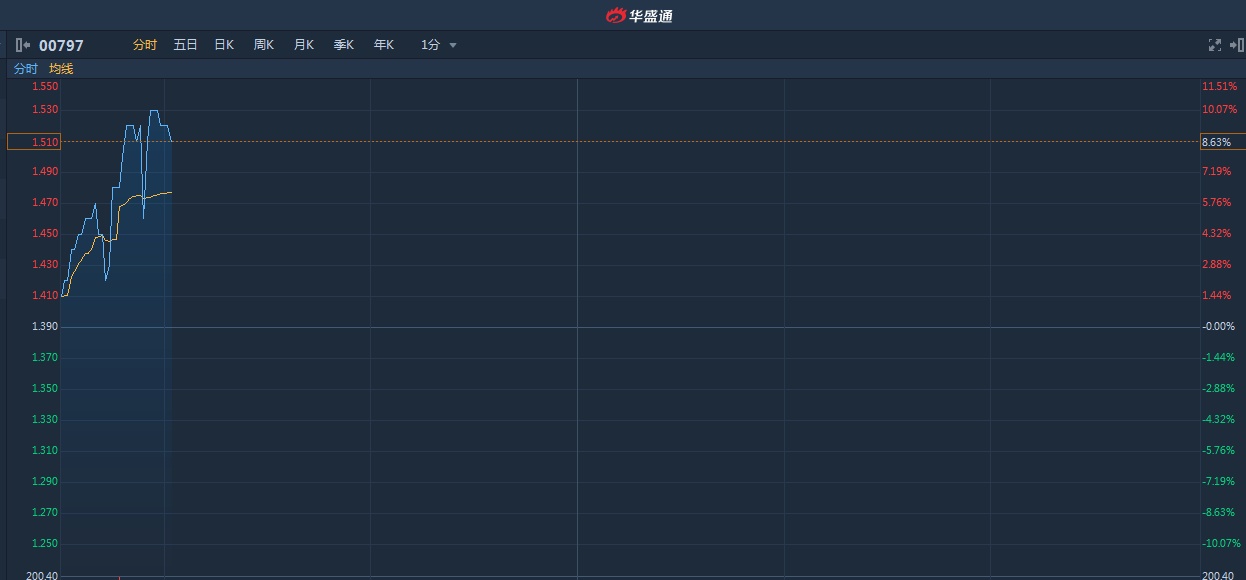 智通财经APP获悉,第七大道(00797)市前现两宗大手成交,每股作价1.40元,共涉及6370.2万股,共涉资8918.28万元。推动股价大幅上扬,截至10时01分,涨8.63%,报价1.51港元,成交额9584万。