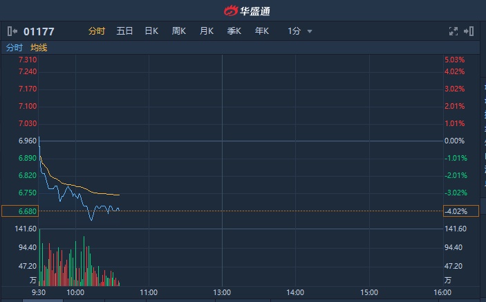 智通财经APP获悉,中国生物制药(01177)早盘逆市走低,截至10时35分,跌4.02%,报6.68港元,成交额达2.373亿港元。