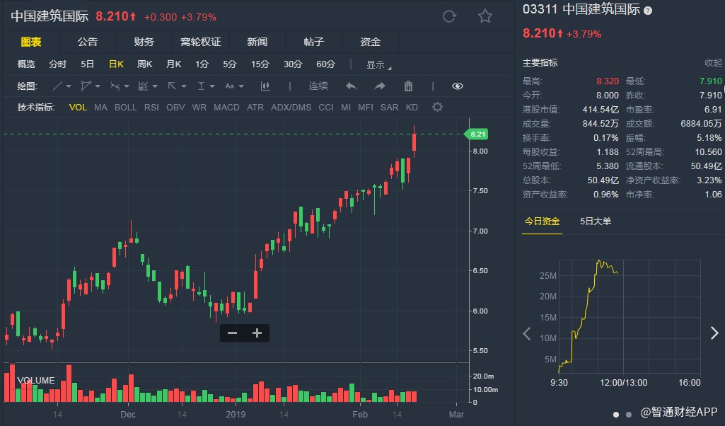 截至发稿,中国建筑国际(03311)涨3.79%,报8.210港元。