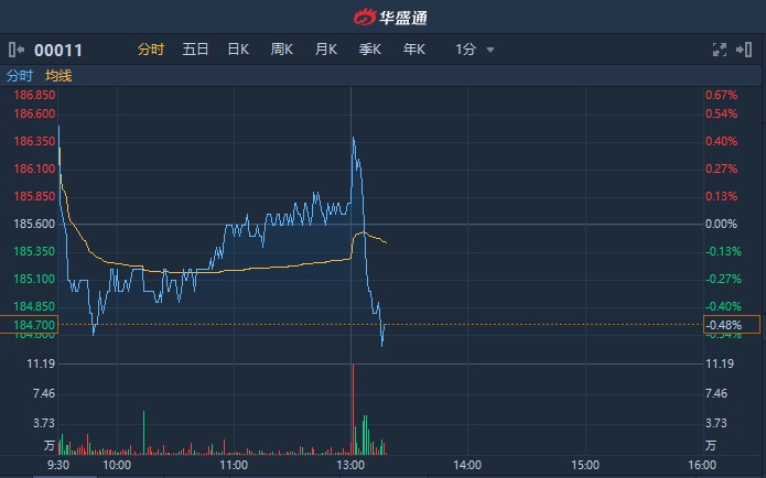 智通财经APP获悉,恒生银行(00011)午间财报显示2018年纯利同比增长20.95%,全年EPS报12.48港元好于市场预期,午后开盘微涨0.43%。但随后公布的汇丰银行业绩不及预期,股价跳水,恒生银行随之走低。截至13时17分,跌0.48%,报184.7港元,成交额达1.98亿港元。