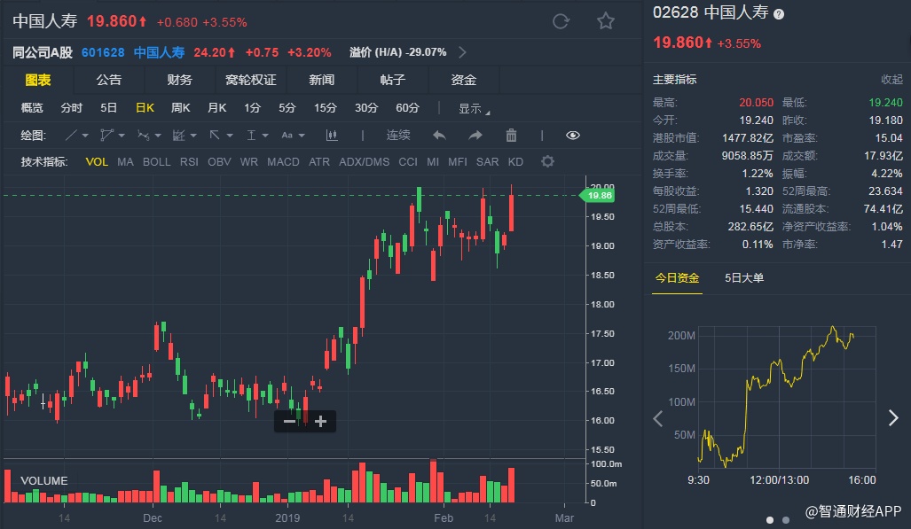 截至发稿,中国人寿(02628)升3.55%,报19.86港元。