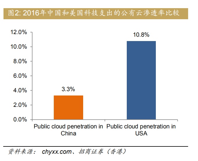 该强劲增长受益于三个主要原因:1)大型企业和中小企业的云服务需求充分;2)互联网巨头拥有成熟的云服务供应能力;以及3)积极的政策支持。