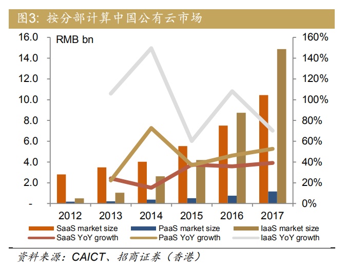 智通财经APP获悉,招商证券(香港)发布研究报告指出,中国公有云市场预计将实现强劲增长,而laS将是三大板块中最核心的增长驱动力,并看好行业龙头阿里巴巴( BABA.US;目标价205美元;买入)、腾讯(00700;目标价414港元;买入)以及金山软件(03888;目标价24港元;买入)。