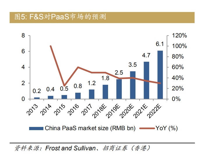 在公有云的三大板块中,laaS预计将带来最为强劲的增长。由于对技术、资金和客户资源有非常高的要求,我们预计laaS市场将进一步向市场领导者集中。同时,我们预计PaaS也将实现较为强劲的增长,因为应用开发流程分工逐步专业化,企业客户的需求也日渐个性化。