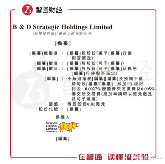 智通财经APP获悉,2月14日,香港土木工程承建商B&D Strategic Holdings Limited(以下简称B&D Strategic)再次向港交所递交上市申请。Grande Capital Limited为其保荐人。
