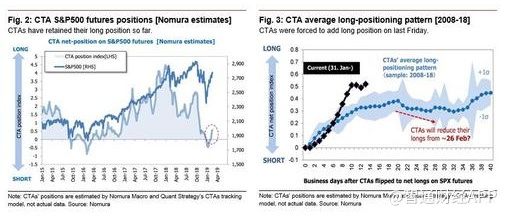 具体来说,野村的量化研究小组认为,根据以往系统化趋势跟随算法的行为,野村预计CTA(期货投资基金)将在2月26日左右开始陆续了结获利多头头寸。
