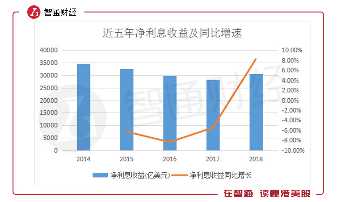 2018年,汇丰控股净利息收益方面实现了大幅度增长,共实现304.89亿净利息收益,较去年同期增长8.21%,并高于2016年净利息收益。而在此前2015-2017年间,汇丰控股净利息收益均为负增长。
