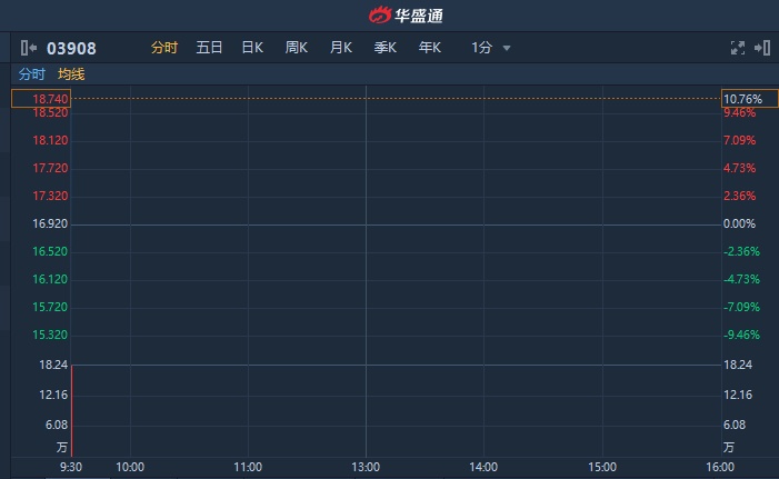 智通财经APP获悉,中金公司(03908)早盘大幅高开,截至9时20分,涨10.76%,报18.74港元,成交额达341.82万港元。