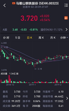 截至发稿,马钢(00323)涨0.54%,报3.720港元。