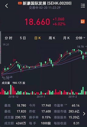 截至发稿,新濠(00200)涨6.02%,报18.66港元。