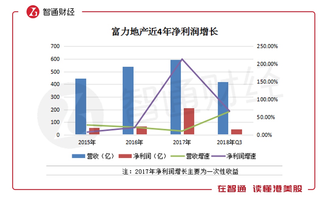 2月17日,富力地产(02777)成为比较少见的发布业绩盈警的地产股,其原因主要为2017年收购万达酒店资产带来大额的收购收益,其2017年净利同比增加了2.13倍,导致2017年高基数,因此业绩大幅下滑为情理之中。