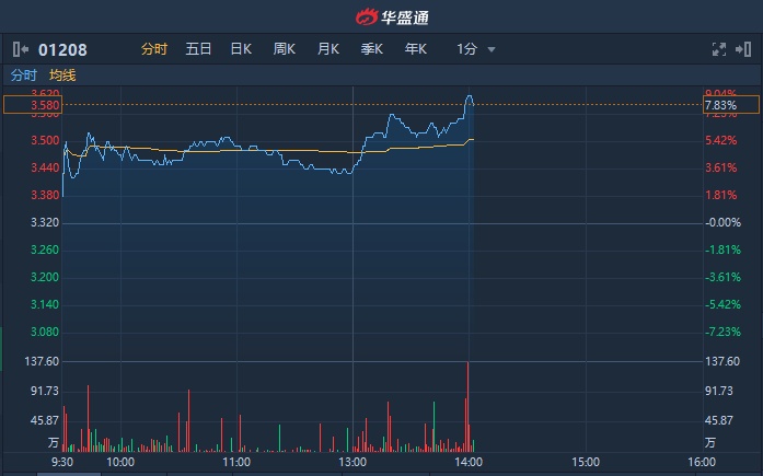 智通财经APP获悉,五矿资源(01208)午后发力上攻,涨幅扩大,截至14时1分,涨7.83%,报3.58港元,成交额达8699万港元。