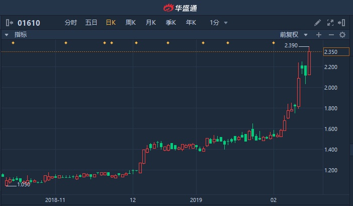智通财经APP获悉,中粮肉食(01610)今日获强力拉升,高见2.39港元,创历史新高,截至14时24分,涨12.26%,报2.38港元,成交额达8619万港元,月内涨幅逾50%。