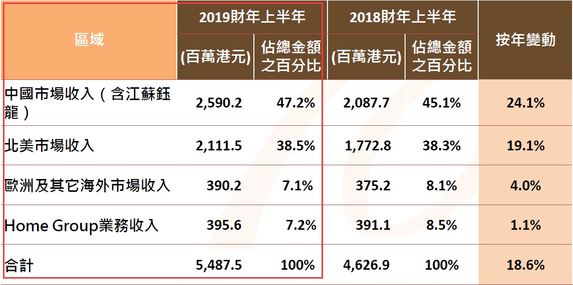 (1)业务增速:2019下半财年,中、美、欧三地业务全线回暖。美国业务在10%关税下获得稳健增长;中国业务出现加速增长;欧洲业务上半财年下跌,下半财年也开始恢复增长。