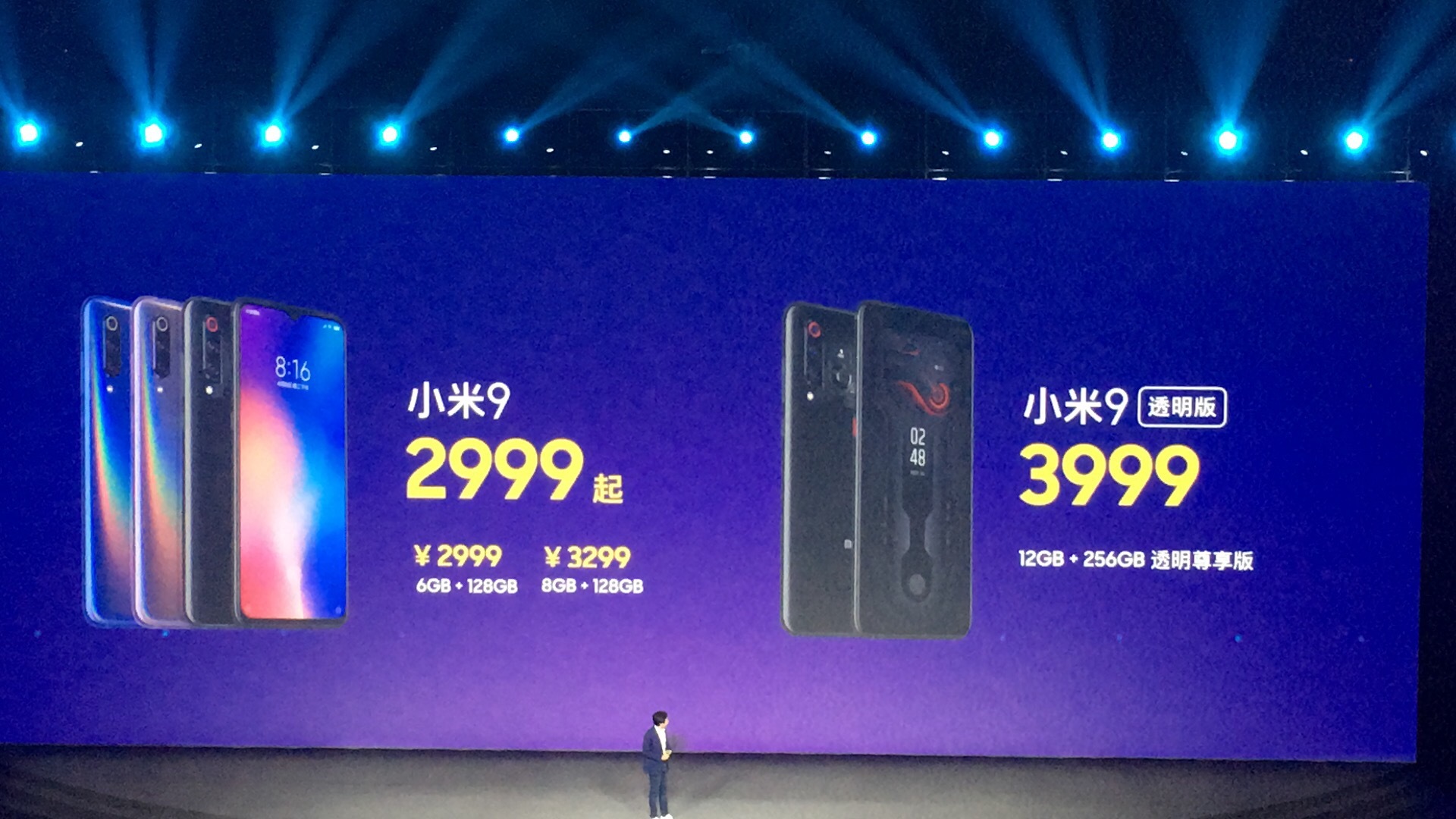 智通财经APP独家获悉,小米9的发布会上,雷军亲自公布了小米手机定价:6GB+128GB售价仅为2999元;8GB+128GB售价为3299元;透明尊享版12GB+256GB售价为3999元。