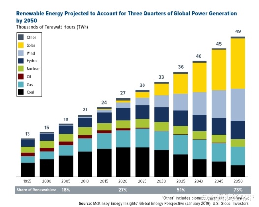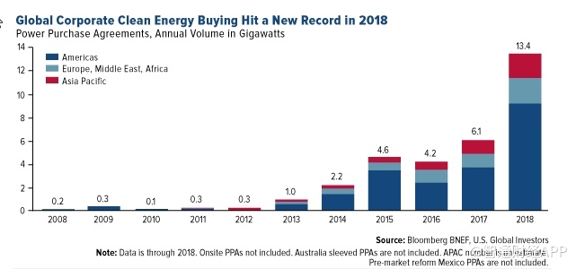 据统计,从2017年到2018年,企业对可再生能源的采购量增加了一倍多,麦肯锡的《2019年全球能源展望》也提供了佐证。